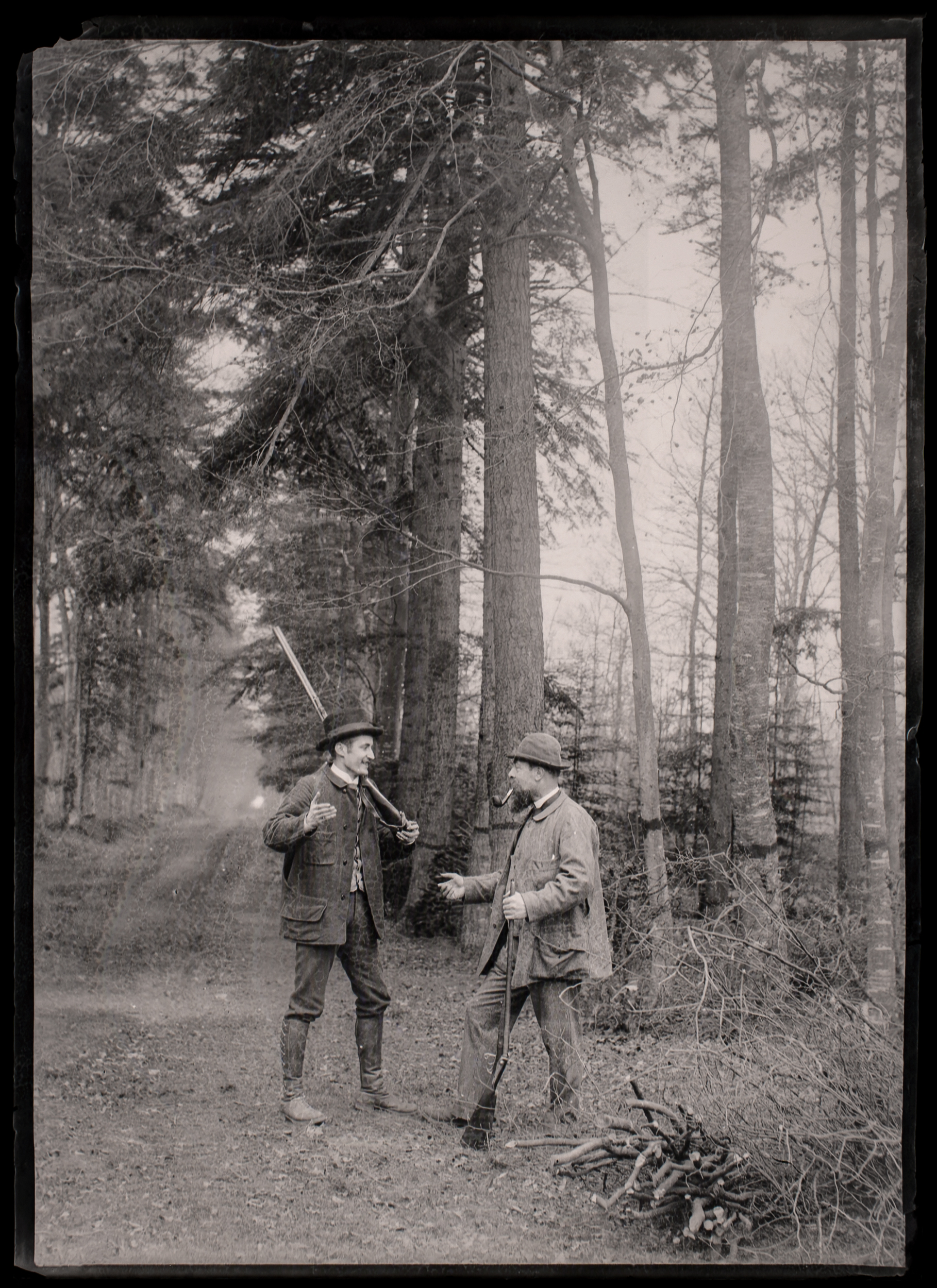 As a group, these seven negatives illustrate the persistence of pinfire arms in elite use, the transition of hunting from aristocratic prerogative to bourgeois leisure, and the importance of photography as both record and performance of status. Preserved on 13 × 18 cm glass plates, they offer a rare, cohesive visual account of a hunt in the Yvelines at the close of the 19th century.