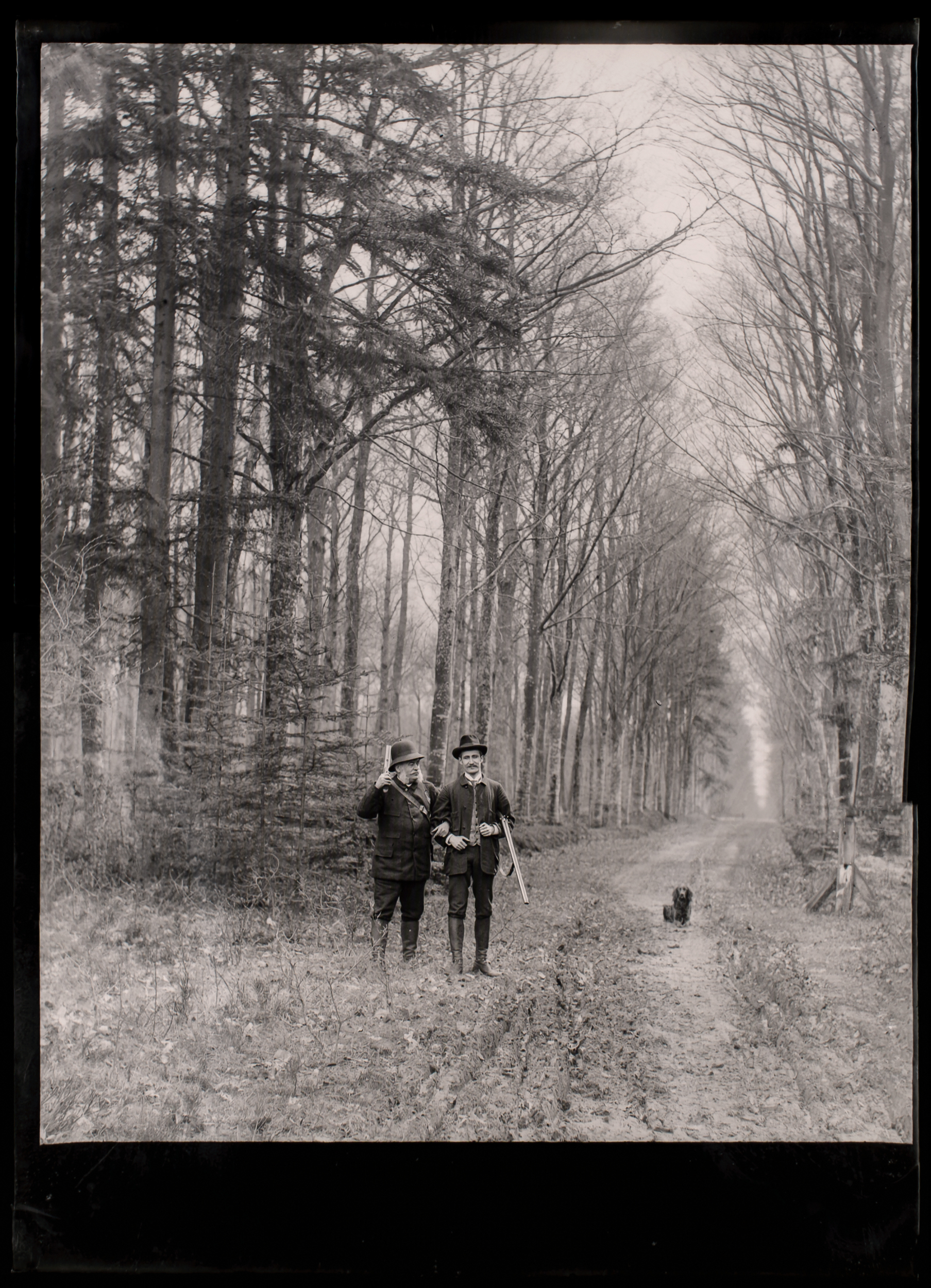 Taken together, these seven negatives reveal not only the bag of game but the entire ritual of a French hunt. They show the controlled entry into reserved grounds, the sociability of pauses and conversations along engineered forest rides, the careful staging of trophy and party, and the integration of urban landmarks with royal hunting landscapes. They offer a rare, cohesive record of sporting practice in the Versailles region at the close of the nineteenth century.